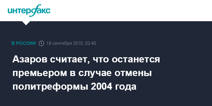 Киев. 18 сентября. ИНТЕРФАКС-УКРАИНА - Премьер-министр Украины Николай Азаров считает, что сохранит свой пост в случае отмены политреформы 2004 года.