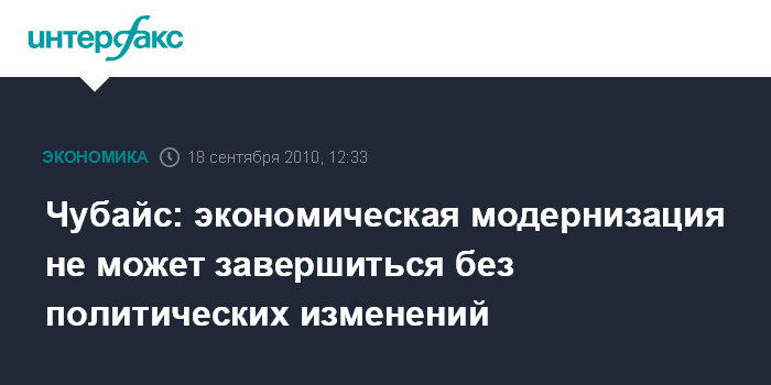 Чубайс: экономическая модернизация не может завершиться без политических изменений