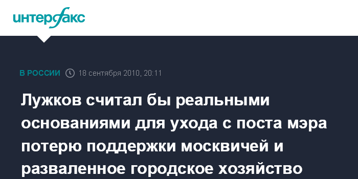 Лужков считал бы реальными основаниями для ухода с поста мэра потерю поддержки москвичей и разваленное городское хозяйство