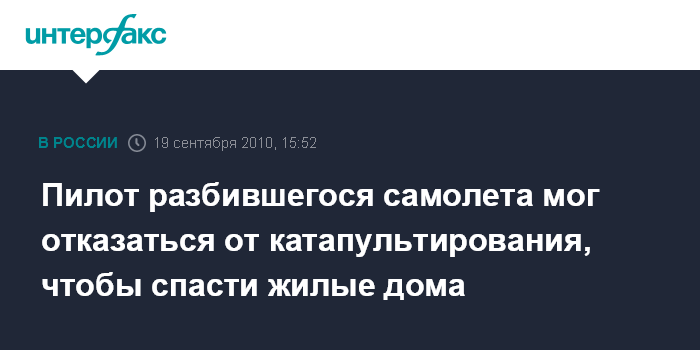 Пилот разбившегося самолета мог отказаться от катапультирования, чтобы спасти жилые дома