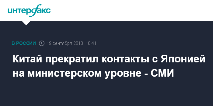 Лондон. 19 сентября. INTERFAX.RU - Китай полностью прекращает обмен с Японией на министерском уровне, сообщила в воскресенье телерадиовещательная корпорация Би-би-си со ссылкой на китайские СМИ. На этот шаг власти Китая пошли после того, как Япония продлила задержание капитана китайского рыболовного траулера, арестованного в спорных водах. Пекин также приостанавливает переговоры с Японией об увеличении числа полетов между странами.