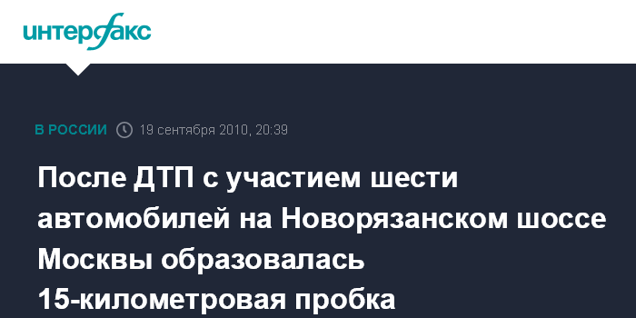После ДТП с участием шести автомобилей на Новорязанском шоссе Москвы образовалась 15-километровая пробка