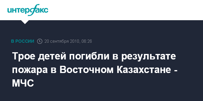 Астана. 20 сентября. ИНТЕРФАКС-КАЗАХСТАН - В селе Бородулиха Восточно-Казахстанской области в результате пожара в жилом доме погибли трое малолетних детей, сообщило в понедельник МЧС Казахстана.