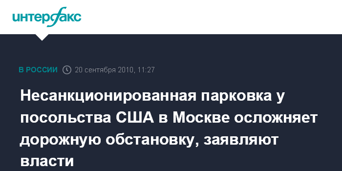 Москва. 20 сентября. INTERFAX.RU - Руководитель департамента транспорта и связи Москвы Василий Кичеджи направил официальное письмо в МИД России о нарушении правил парковки водителями автомобилей с дипломатическими номерами у здания посольства США.