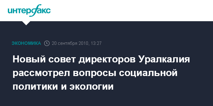 Новый совет директоров Уралкалия рассмотрел вопросы социальной политики и экологии