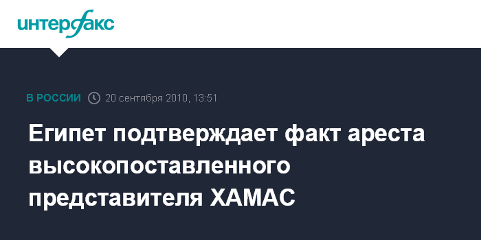 Каир. 20 сентября. INTERFAX.RU - Власти Египта сообщили, что действительно арестовали на прошлой неделе высокопоставленного представителя палестинского движения ХАМАС, сообщает в понедельник местная газета "Аль-Ахрам".