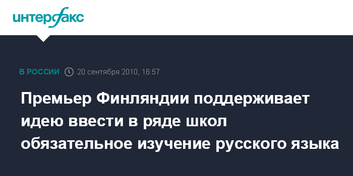 Хельсинки. 20 сентября. INTERFAX.RU - Премьер-министр Финляндии Мари Кивиниеми одобряет предложение ввести обязательное изучение русского языка в школах той части страны, которая граничит с Россией.