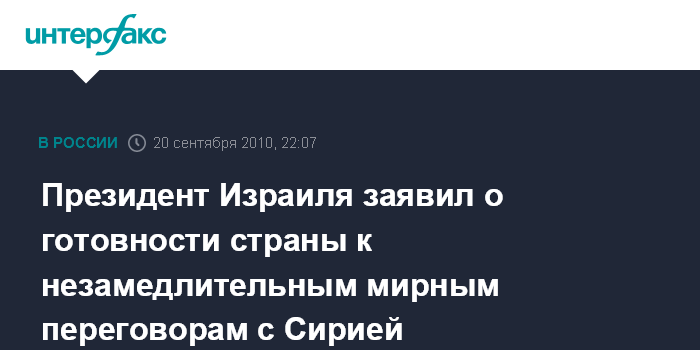 Президент Израиля заявил о готовности страны к незамедлительным мирным переговорам с Сирией