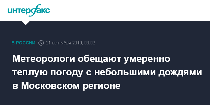 Москва. 21 сентября. INTERFAX.RU - Погода в Московском регионе в ближайшие дни будет вполне теплой с кратковременными дождями, прогнозируют метеорологи.
