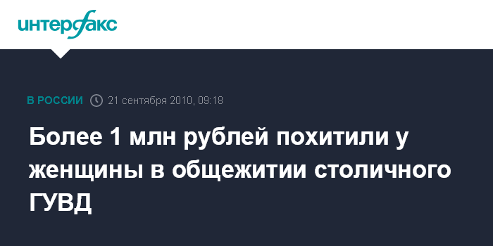 Более 1 млн рублей похитили у женщины в общежитии столичного ГУВД