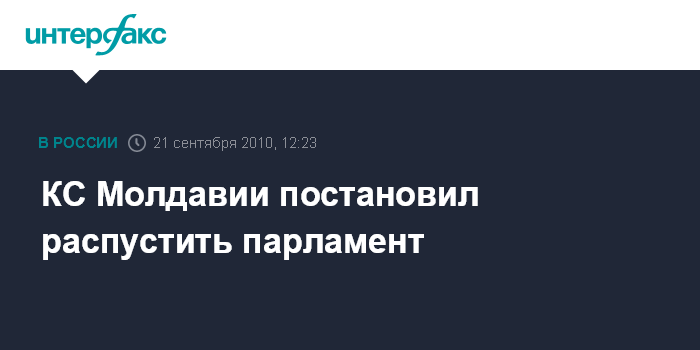 Кишинев. 21 сентября. INTERFAX.RU - Парламент Молдавии должен быть распущен и назначена дата досрочных парламентских выборов. Такое решение принял во вторник Конституционный суд страны.