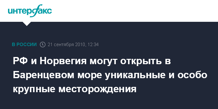 РФ и Норвегия могут открыть в Баренцевом море уникальные и особо крупные месторождения