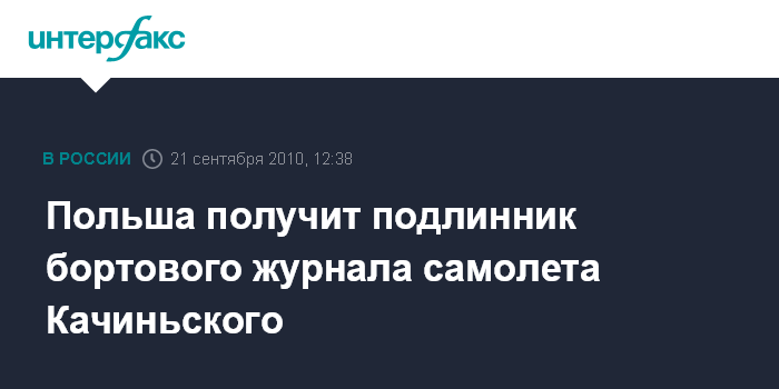 "В соответствии с запросом польской стороны передается подлинный экземпляр бортового журнала, находившийся на борту самолета Ту-154М № 101 и обнаруженный на месте катастрофы", - сообщил журналистам в Москве во вторник заместитель председателя Межгосударственного авиационного комитета Олег Ермолов.