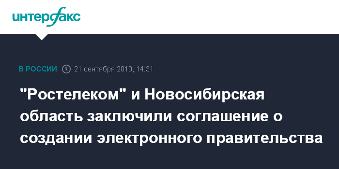 Новосибирск. 21 сентября. INTERFAX.RU - ОАО "Ростелеком" и Новосибирская область во вторник подписали соглашение о создании регионального электронного правительства, сообщил корреспондент "Интерфакса" с церемонии подписания.