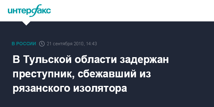 Тула. 21 сентября. INTERFAX.RU - В городе Белеве Тульской области задержан мужчина, сбежавший из рязанского изолятора временного содержания, сообщили "Интерфаксу" во вторник в пресс-службе регионального УВД.
