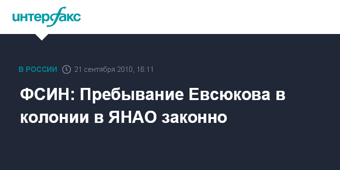 ФСИН: Пребывание Евсюкова в колонии в ЯНАО законно