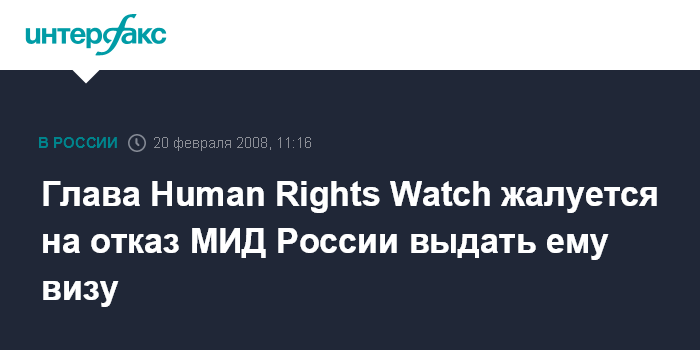 Глава Human Rights Watch жалуется на отказ МИД России выдать ему визу