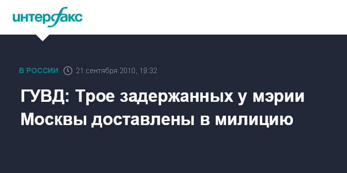Москва. 21 сентября. INTERFAX.RU - В ГУВД Москвы подтверждают задержание во вторник вечером трех человек на Тверской площади возле здания мэрии.