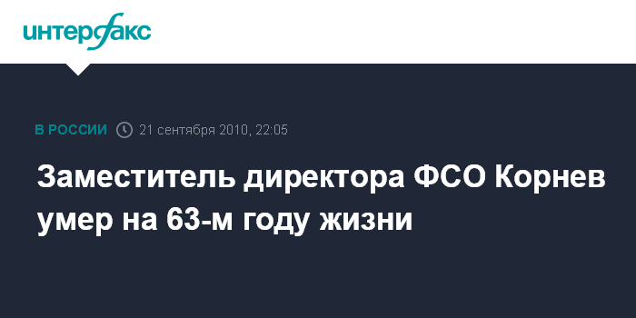 В центре по связям с прессой и общественностью ФСО "Интерфаксу" подтвердили информацию о кончине Корнева.