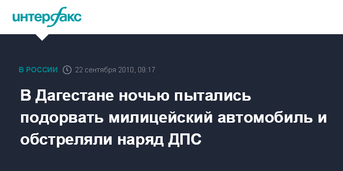 Махачкала. 22 сентября. INTERFAX.RU - Два нападения на сотрудников милиции совершены в ночь на среду в Дагестане, сообщили "Интерфаксу" в пресс-службе МВД республики.