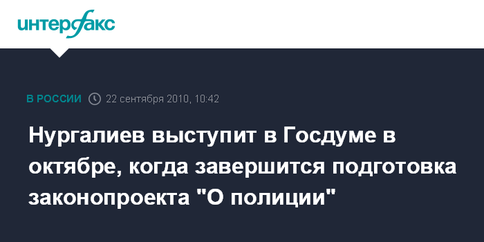 Нургалиев выступит в Госдуме в октябре, когда завершится подготовка законопроекта "О полиции"