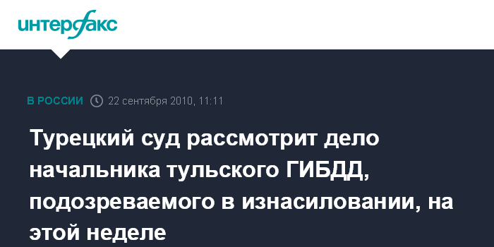 Турецкий суд рассмотрит дело начальника тульского ГИБДД, подозреваемого в изнасиловании, на этой неделе