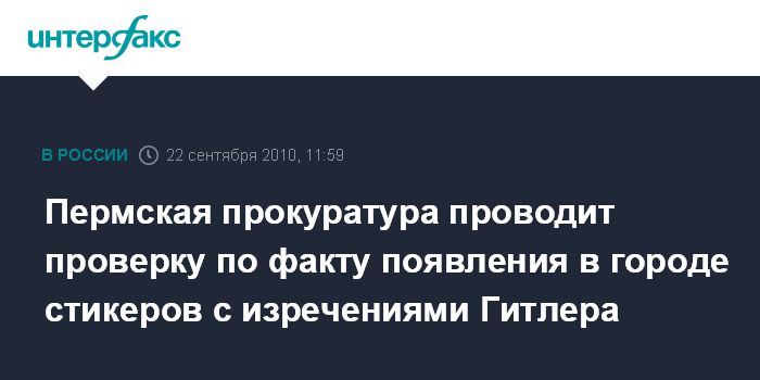 Пермь. 22 сентября.INTERFAX.RU - Администрация Перми обратилась в городскую прокуратуру с просьбой проверить факт размещения в общественном транспорте города в середине сентября стикеров с изречениями Адольфа Гитлера.