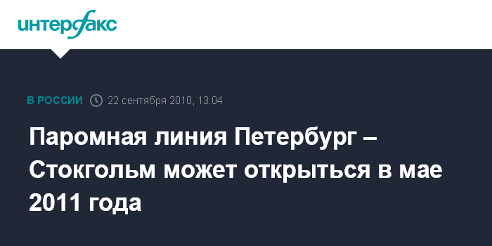 Санкт-Петербург. 22 сентября. INTERFAX.RU - Компания St.PeterLine планирует к майским праздникам 2011 года открыть новую паромную линию из Петербурга в Стокгольм.