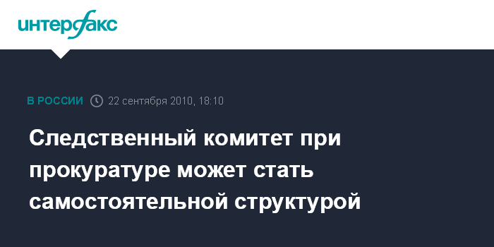 Москва. 22 сентября. ИНТЕРФАКС - Следственный комитет при прокуратуре (СКП) может быть в ближайшее время выделен в самостоятельную структуру, сообщил "Интерфаксу" информированный источник в правоохранительных органах.