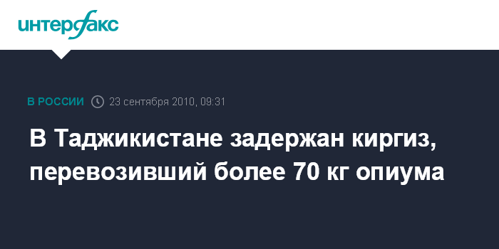 Душанбе. 23 сентября. INTERFAX.RU - Сотрудники Агентства по контролю за наркотиками (АКН) Таджикистана в Согдийской области республики задержали гражданина Киргизии, перевозившего в автомобиле более 74 кг опия, сообщила в четверг пресс-служба ведомства.