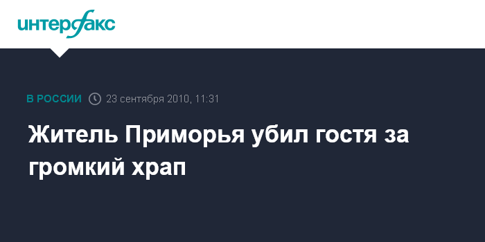 Владивосток. 23 сентября. INTERFAX.RU - Житель одного из сел Приморского края расправился со своим гостем за то, что тот ночью сильно храпел и мешал спать.