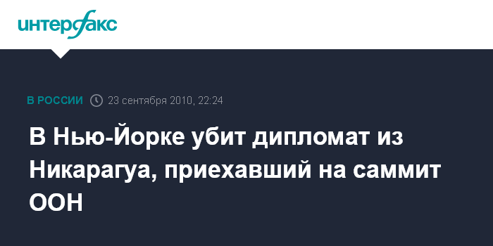 В Нью-Йорке убит дипломат из Никарагуа, приехавший на саммит ООН