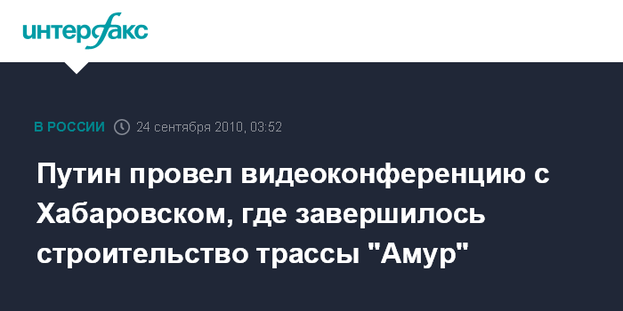 Путин провел видеоконференцию с Хабаровском, где завершилось строительство трассы "Амур"