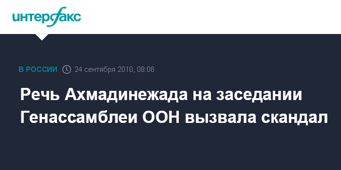 Это случилось после того, как М.Ахмадинежад стал говорить о версиях терактов 11 сентября, заявив, что по одной из них, организаторами терактов могли быть представители американского правительства.