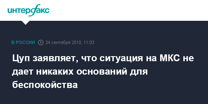 Цуп заявляет, что ситуация на МКС не дает никаких оснований для беспокойства
