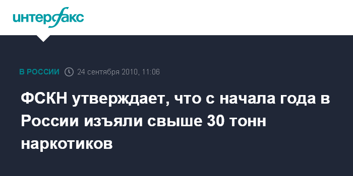 Москва. 24 сентября. INTERFAX.RU - Российские правоохранительные органы в 2010 году изъяли более 30 тонн наркотиков и ликвидировали более 6 тысяч наркопритонов, сообщает глава ФСКН Виктор Иванов.