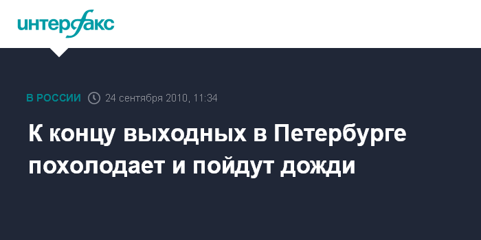 Санкт-Петербург. 24 сентября. INTERFAX.RU - Относительно теплая и сухая погода ожидается в Петербурге и Ленинградской области в течение пятницы и субботы, но уже в воскресенье днем заметно похолодает, сообщили "Интерфаксу" в городском Гидрометцентре.