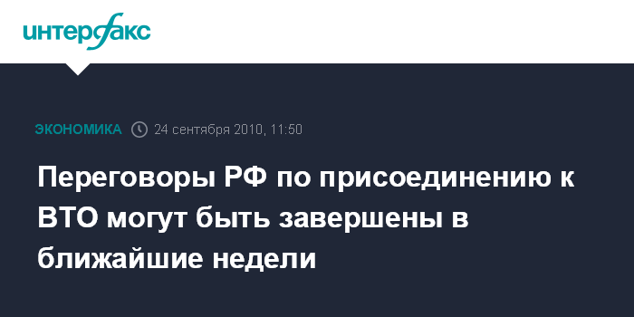 Переговоры РФ по присоединению к ВТО могут быть завершены в ближайшие недели