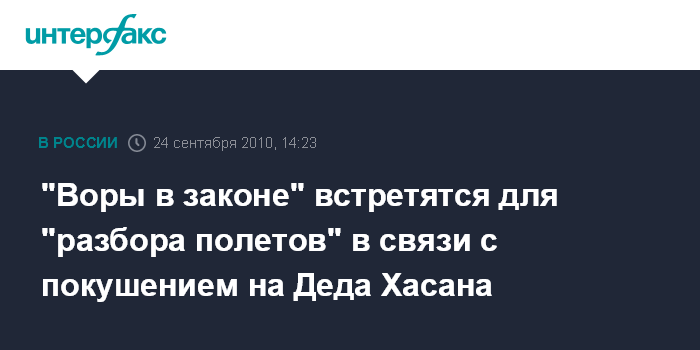 "Воры в законе" встретятся для "разбора полетов" в связи с покушением на Деда Хасана