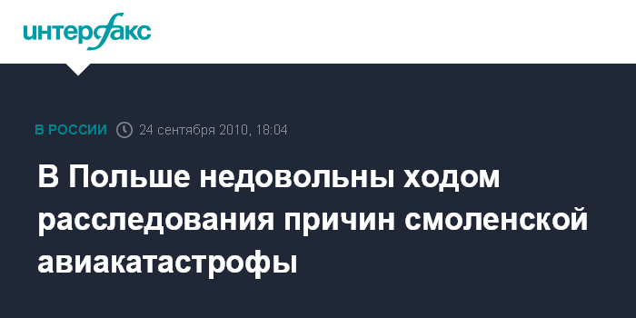 Варшава. 24 сентября. INTERFAX.RU - Поляки разочарованы российско-польским сотрудничеством в деле выяснения причин смоленской авиакатастрофы - таковы результаты опроса общественного мнения, проведенного польской социологической службой CBOS.