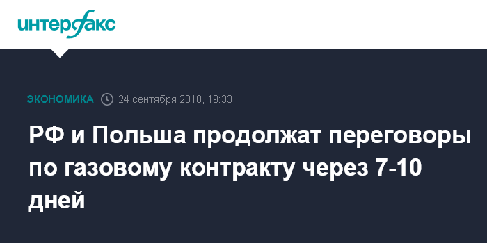 Москва. 24 сентября. INTERFAX.RU - Россия и Польша проведут следующие переговоры с тем, чтобы привести новый контракт на поставки газа в соответствие с правилами Евросоюза, через 7-10 дней, передает агентство Bloomberg.