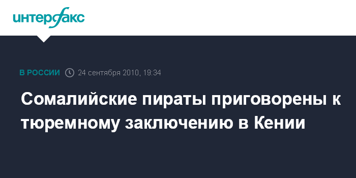 Лондон. 24 сентября. INTERFAX.RU - Сомалийские пираты приговорены в Кении к пяти годам тюремного заключения, передает в пятницу британская телерадиокорпорация Би-би-си.