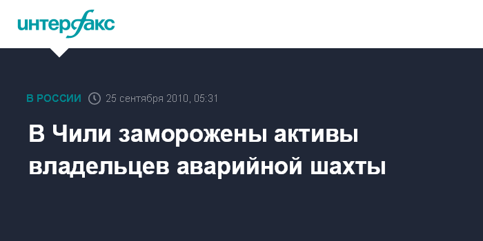 Лондон. 25 сентября. ИНТЕРФАКС - Суд в Чили заморозил активы компании-владельца рудника, в котором уже 50 дней остаются запертыми 33 шахтера, сообщает британская телерадиокорпорация Би-би-си.