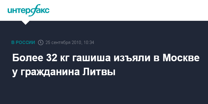 Москва. 25 сентября. INTERFAX.RU - В Москве задержан безработный гражданин Литвы с крупной партией гашиша и амфетамина, сообщил в субботу "Интерфаксу" источник в правоохранительных органах. По его данным, иностранец был задержан на Тимирязевской улице. "Сотрудники УУР КМ ГУВД в ходе проведения оперативно-розыскных мероприятий задержали неработающего, гражданина Литвы, у которого в принадлежащей ему автомашине "Ситроен" обнаружили и изъяли 32 кг 116 г гашиша и 319 г метамфетамина", - рассказал он.
