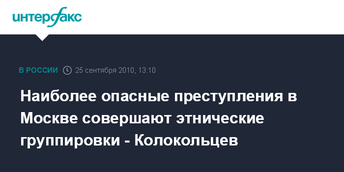 Наиболее опасные преступления в Москве совершают этнические группировки - Колокольцев