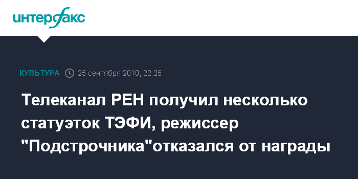 Телеканал РЕН получил несколько статуэток ТЭФИ, режиссер "Подстрочника"отказался от награды