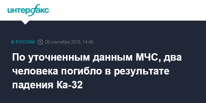 По уточненным данным МЧС, два человека погибло в результате падения Ка-32