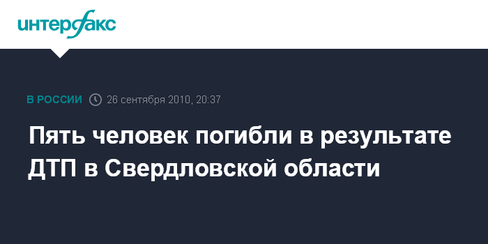 Пять человек погибли в результате ДТП в Свердловской области