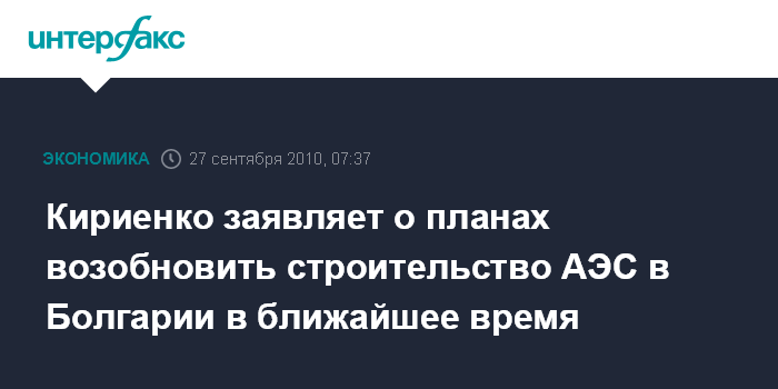 Кириенко заявляет о планах возобновить строительство АЭС в Болгарии в ближайшее время