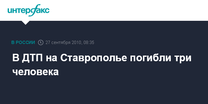 Ростов-на-Дону. 27 сентября. INTERFAX.RU - Жертвами ДТП на Ставрополье стали три человека, сообщили агентству "Интерфакс" в пресс-службе Южного регионального центра МЧС России.